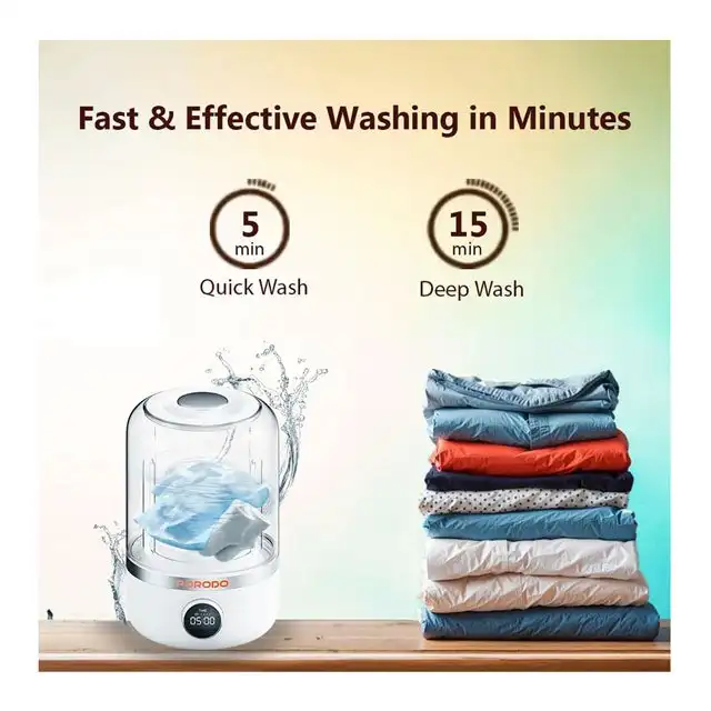 نوع محصول: مینی واش قابل حمل: این دستگاه در دسته لوازم خانگی کوچک و قابل حمل قرار میگیرد و برای شستوشوی لباس در حجم کم طراحی شده است. قابلیت حمل آسان آن، این امکان را فراهم میسازد تا در هر مکانی، از جمله مسافرتها، کمپینگها، یا آپارتمانهای کوچک، از آن استفاده نمود.